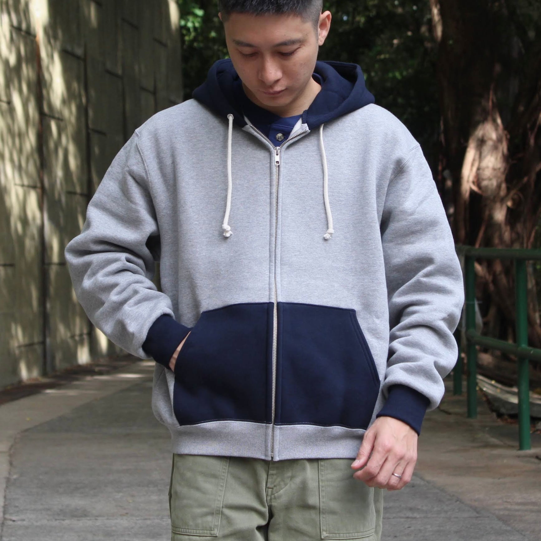 AHE HEE - NAVY X GREY ZIP UP HOODIE