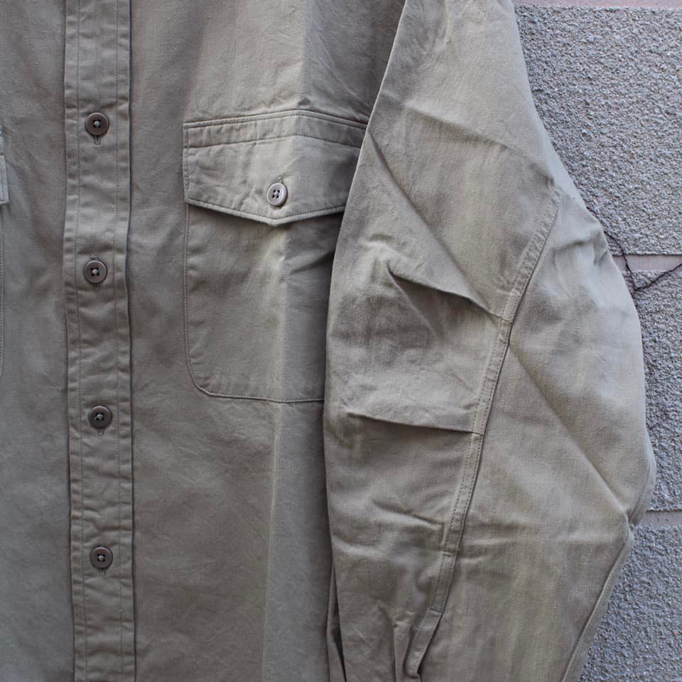 與品牌的CLASSIC款-WIDE B.D SHIRTS同一CUTTING,闊身同時偏短身,有LOOSE FIT效果。兩袖的手肘位置加入M-65 FIELD JACKET常見的BIG TACK,更具線條感。