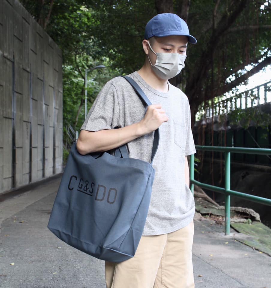 2 Way Tote Bag - 採用手持與上膊的兩用設計,內有暗格。布料則採用日本岡山県倉敷8号帆布,外層作了防水處理,具有輕微的防水效果。當隨著使用次數的增多,表面會越來越軟身,呈現出屬於自己獨有的使用狀態。