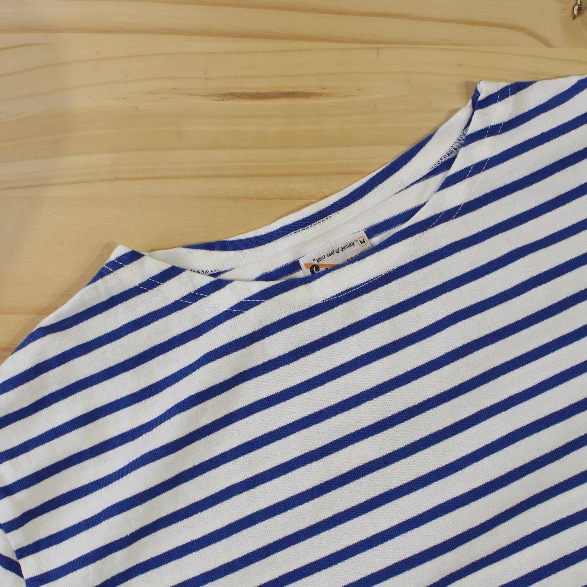 面料略帶硬挺感,一字領設計,領口刻意做得較小一些,容易穿著!