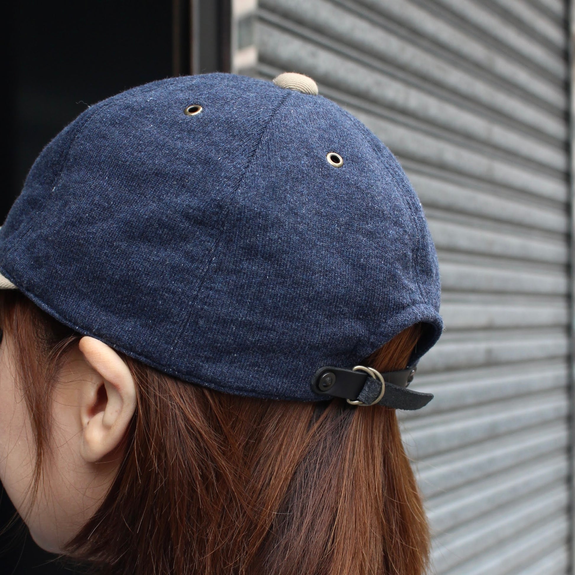 帽身主布是採用衛衣常用的FRENCH TERRY布料,帽簷則是採用軍用斜紋布,彼此形成強烈的對比。SIZE調較帶是品牌最經典的黑色牛皮製成,會隨使用時間出現迷人的效果。