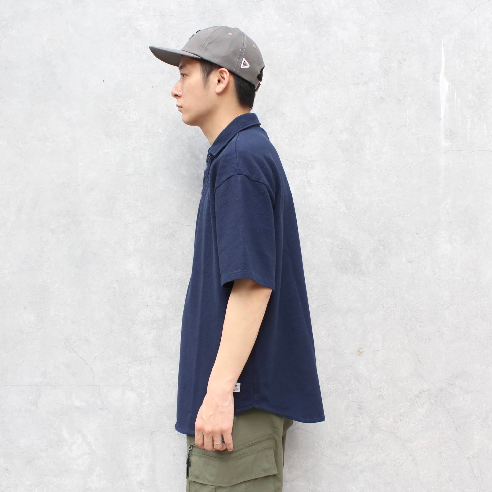 以寬鬆休閒的CUTTING為基調,衫身偏闊身,下擺特別參考了BASEBALL TEE常見的圓腳設計,衣領採用了4粒鈕,整體帶有休閒的感覺。
