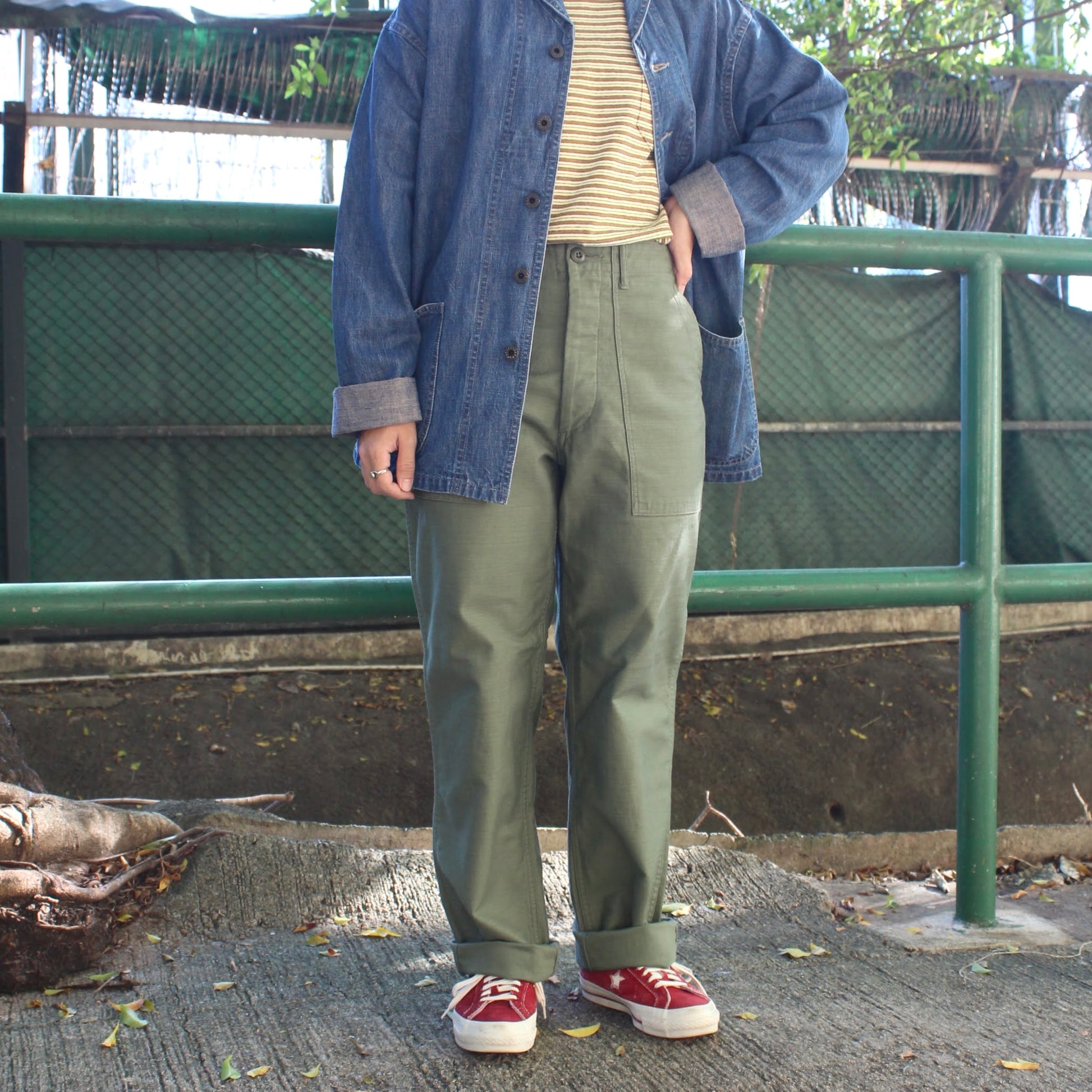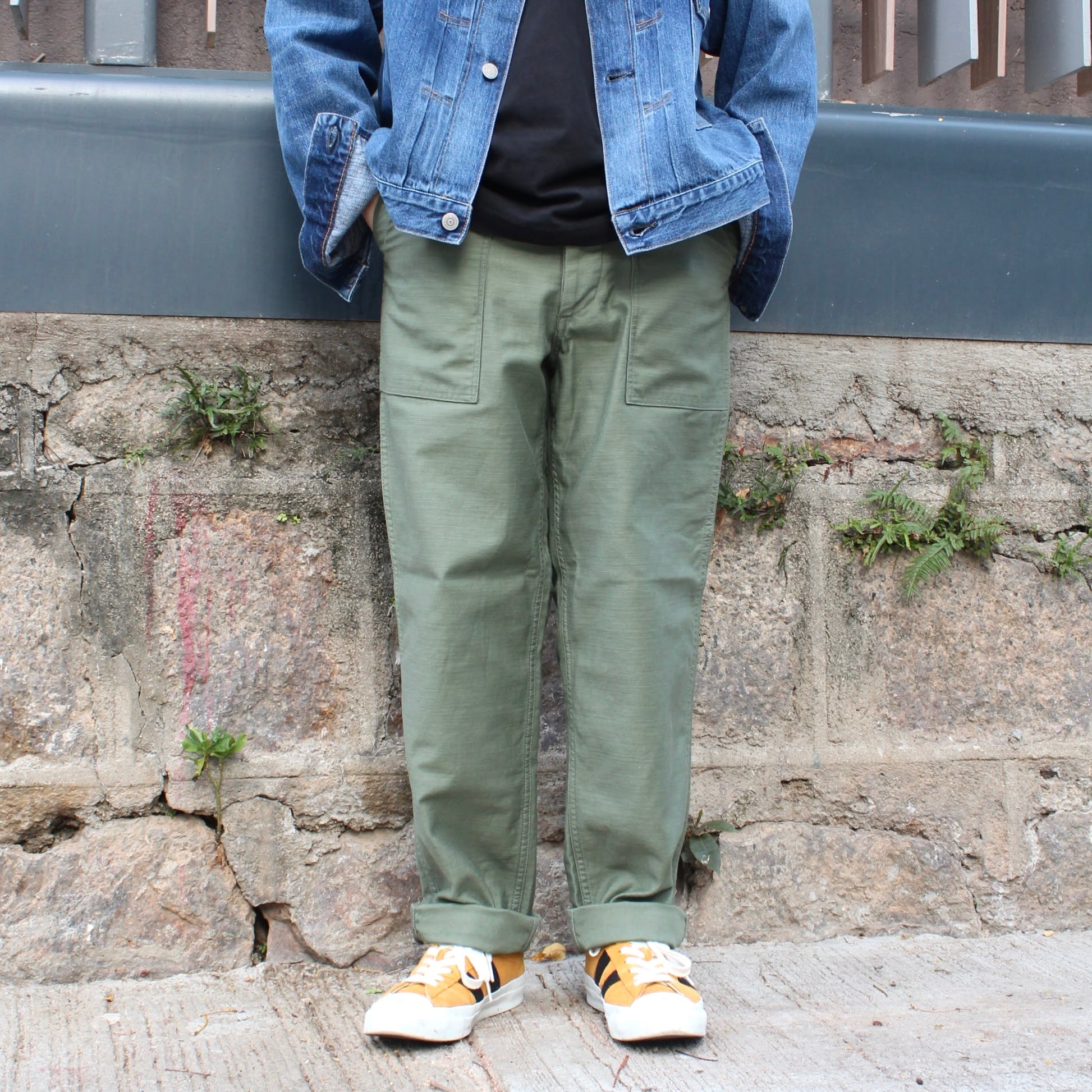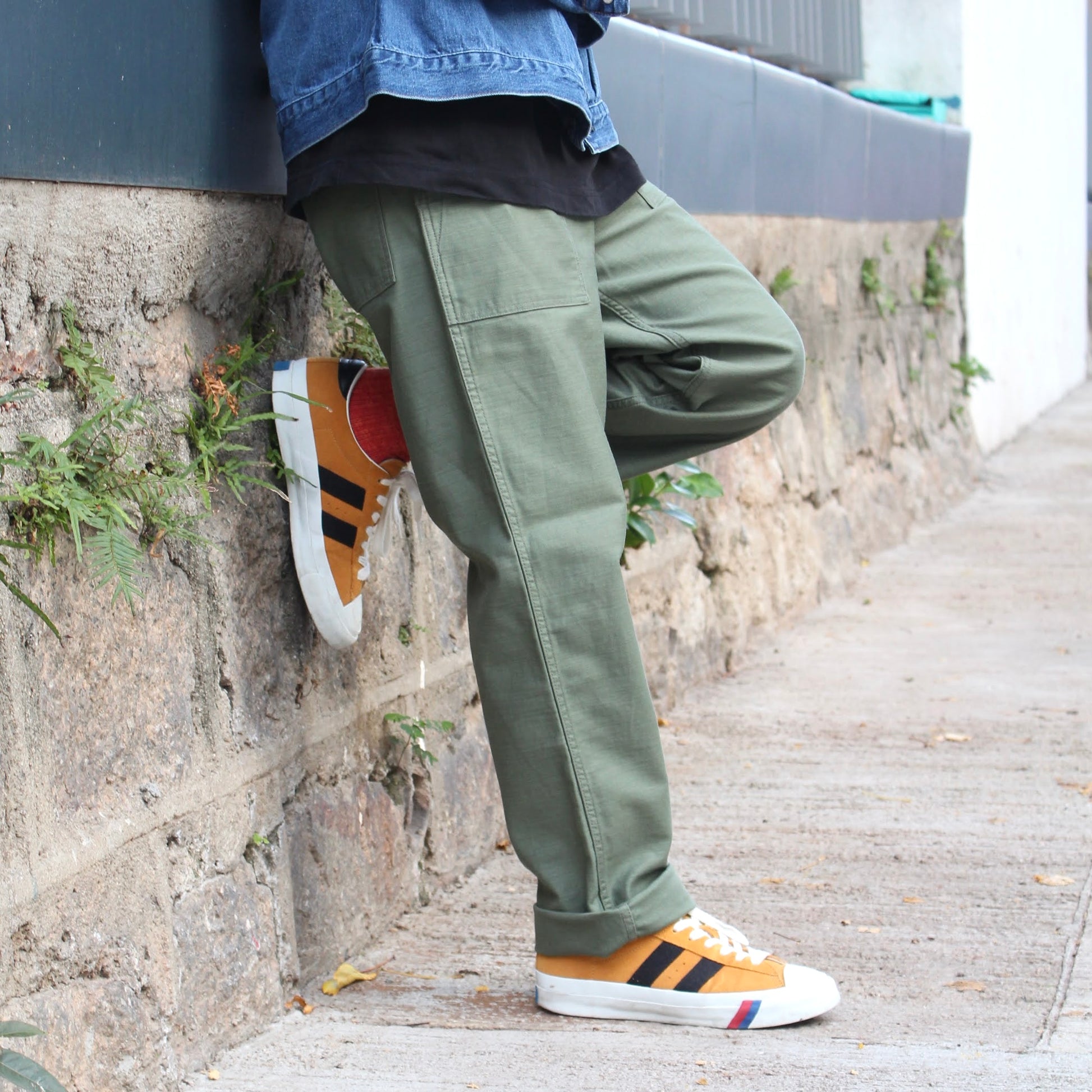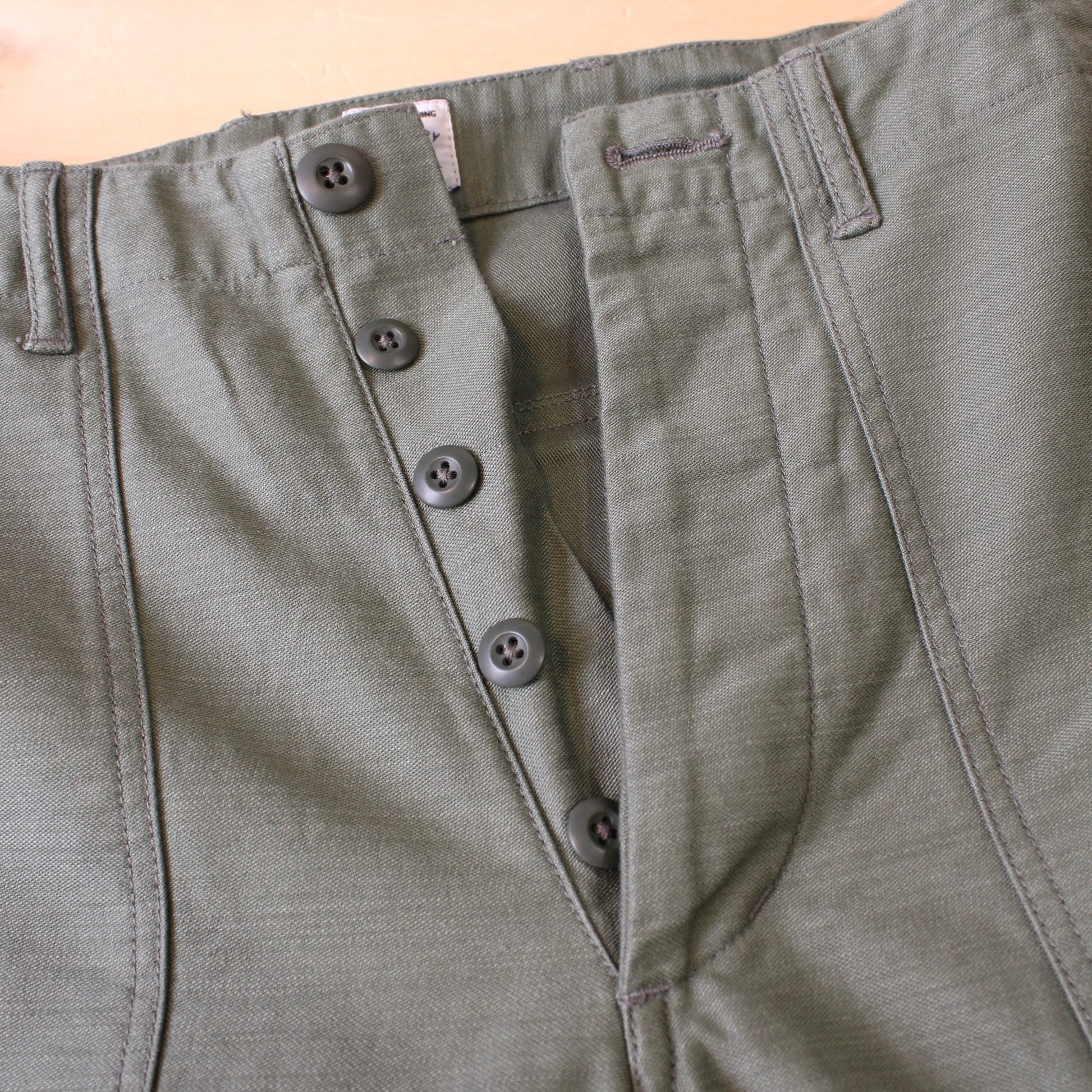 採用原版FATIGUE PANTS最標誌性的SATIN FABRIC ,特點是帶有迷人的光澤感,同時十分耐磨耐穿!LIGHT OLIVE DRAB是經過洗水後的軍綠色,帶有自然的復古感!