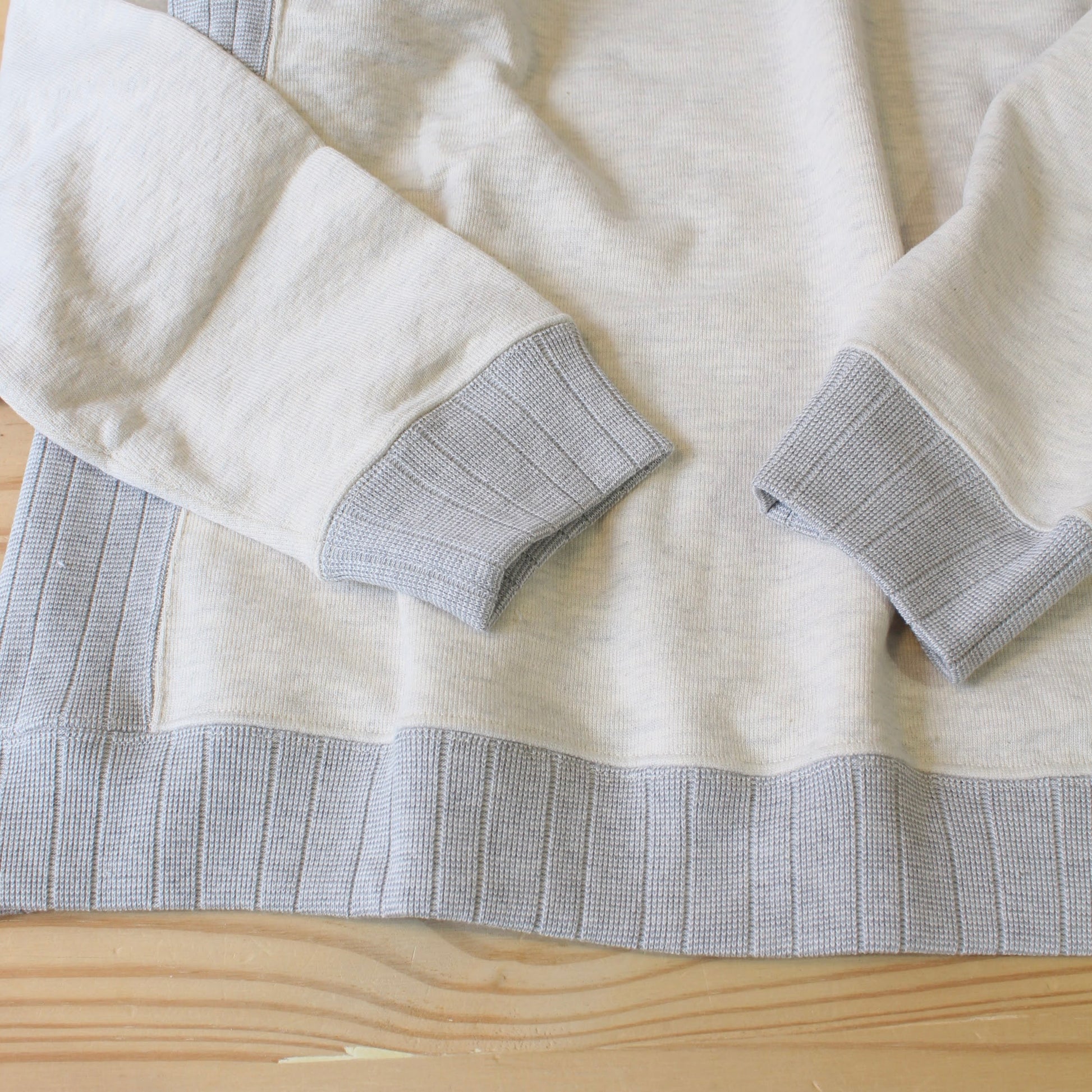 羅紋部份是採用帶有復古風格的“NEEDLE OUT”設計,這種設計常見於經典的衛衣之中。兩側,插肩與後背處亦加入羅紋設計,確保穿著時的舒適度更自如!