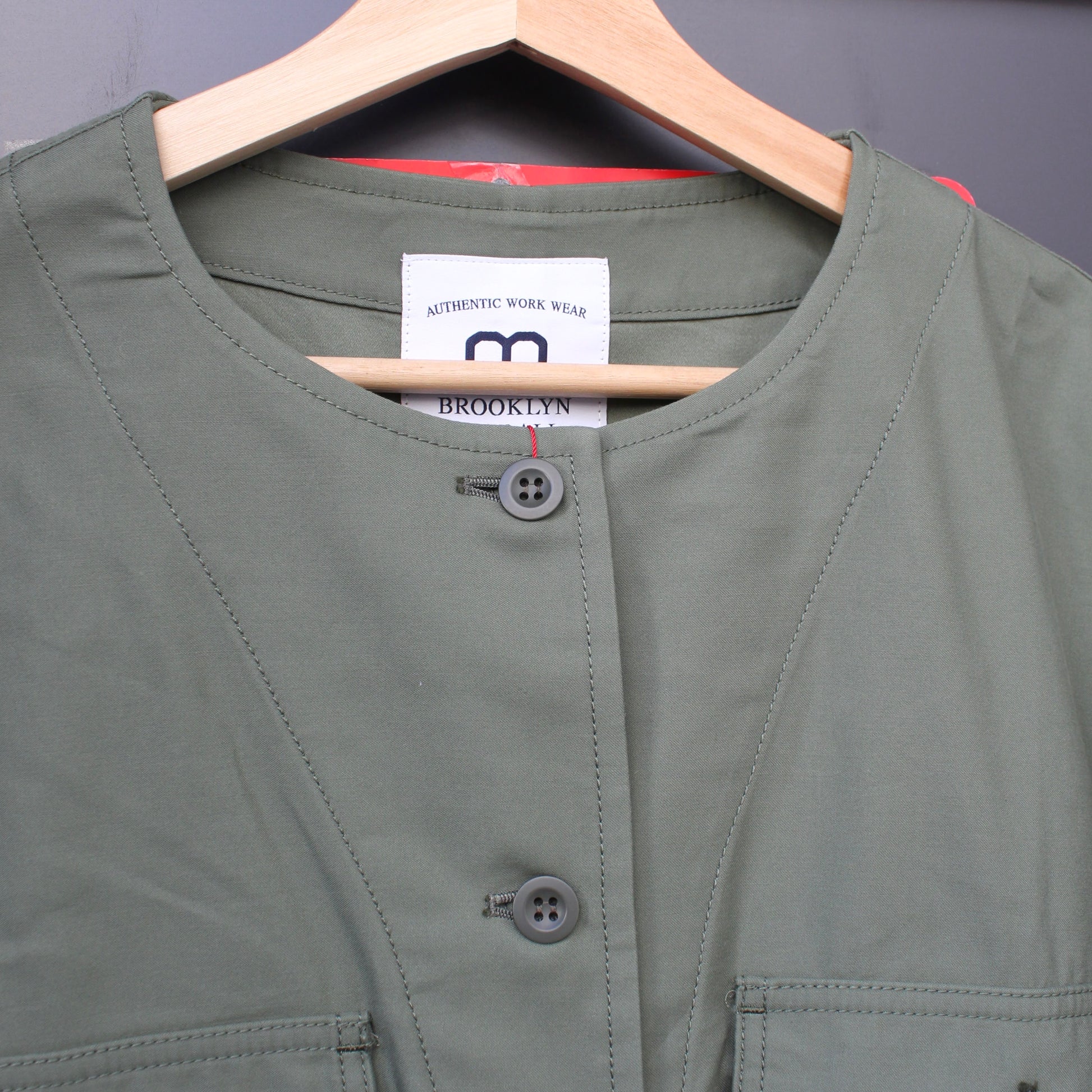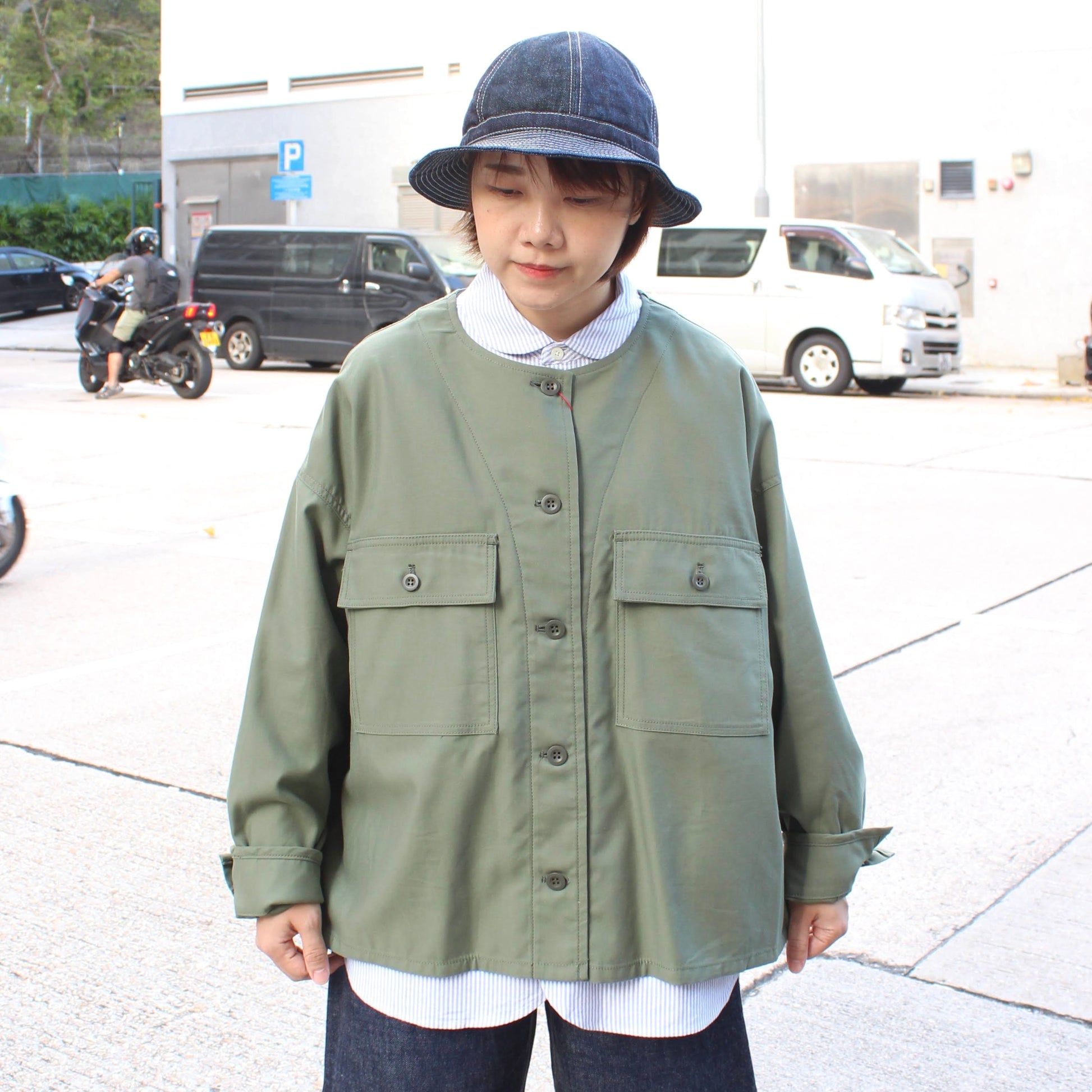 COLLARLESS BLOUSON, designed based on women's CASUAL WEAR, has a loose CUTTING, the double large pockets on the front are based on the military SHIRT design, and the collarless design is suitable for matching with various items!