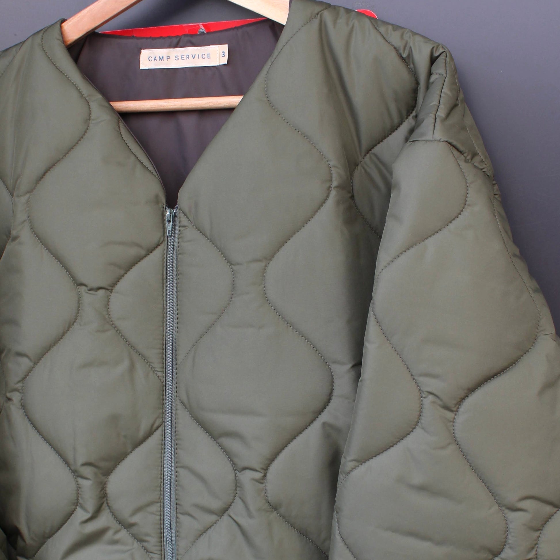 CAMP SERVICE's most popular ITEM in winter in recent years is inspired by the very classic military QUILT JACKET. The large front pocket is made of FLANNEL material. Overall it is very light and comfortable, and has a good thermal insulation effect.