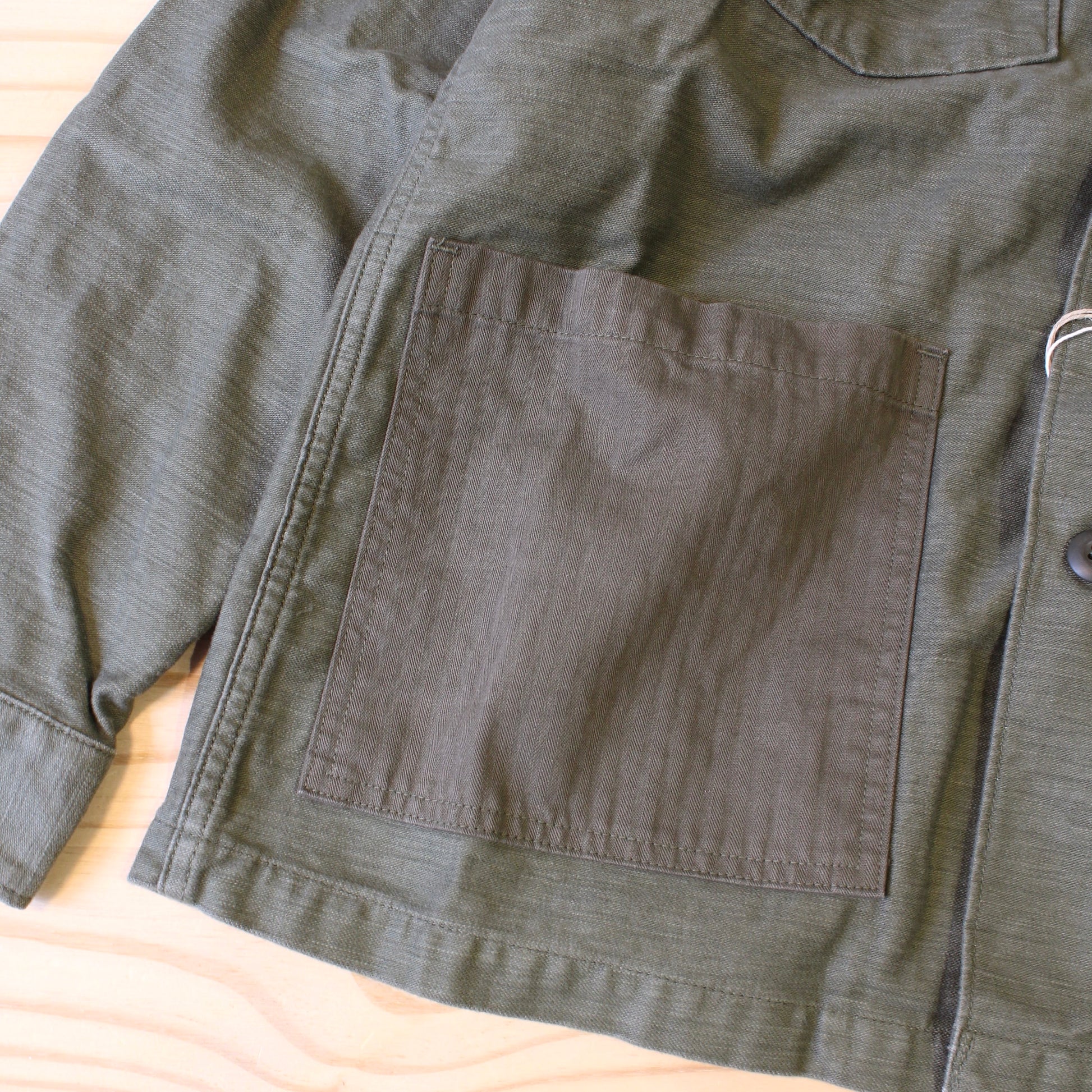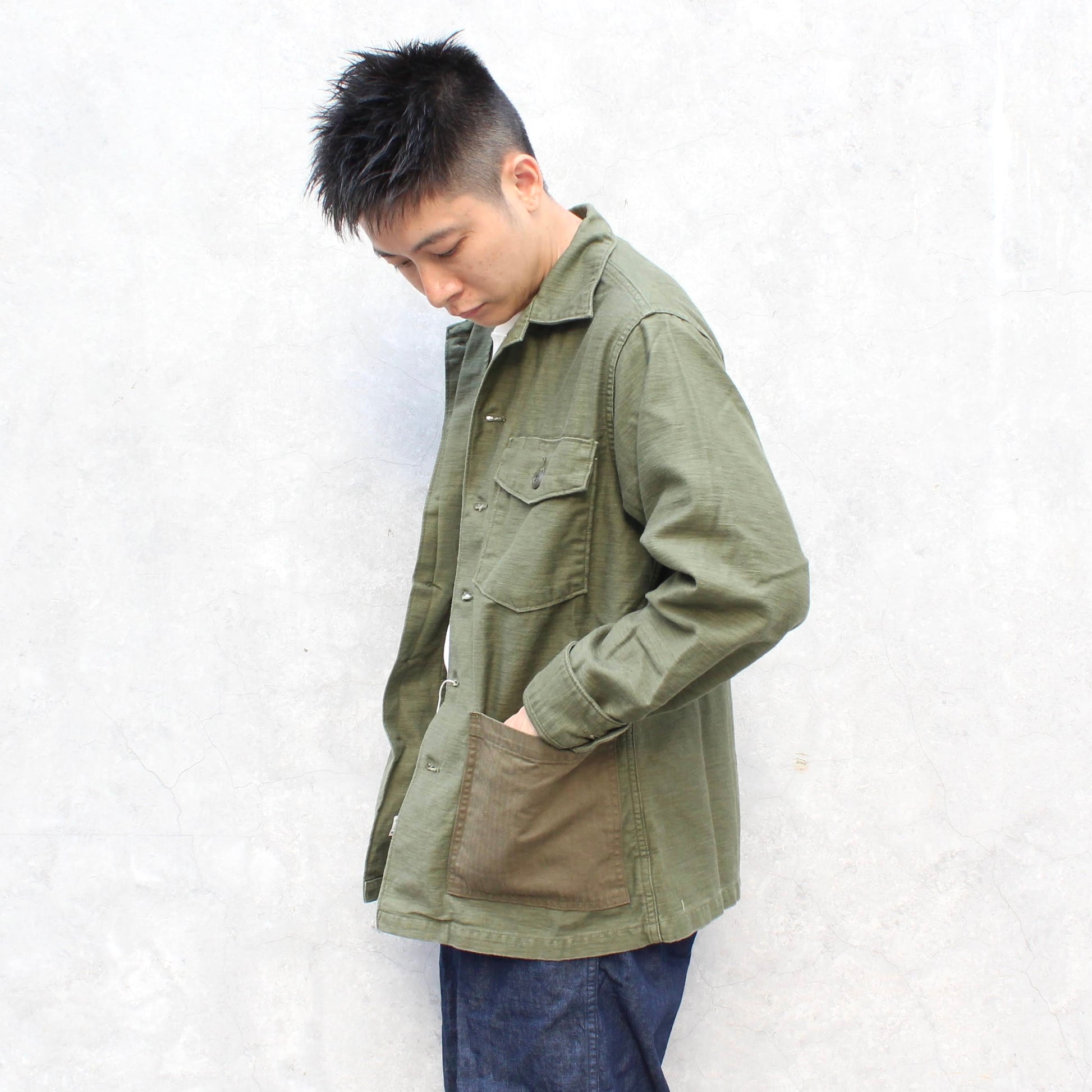 The new design is based on the brand's very classic FATIGUE SHIRT. The biggest difference is the pockets with HERRINGBONE fabric, which forms a strong contrast with the BACKSATIN and will produce a more charming fading effect after being worn for many years.