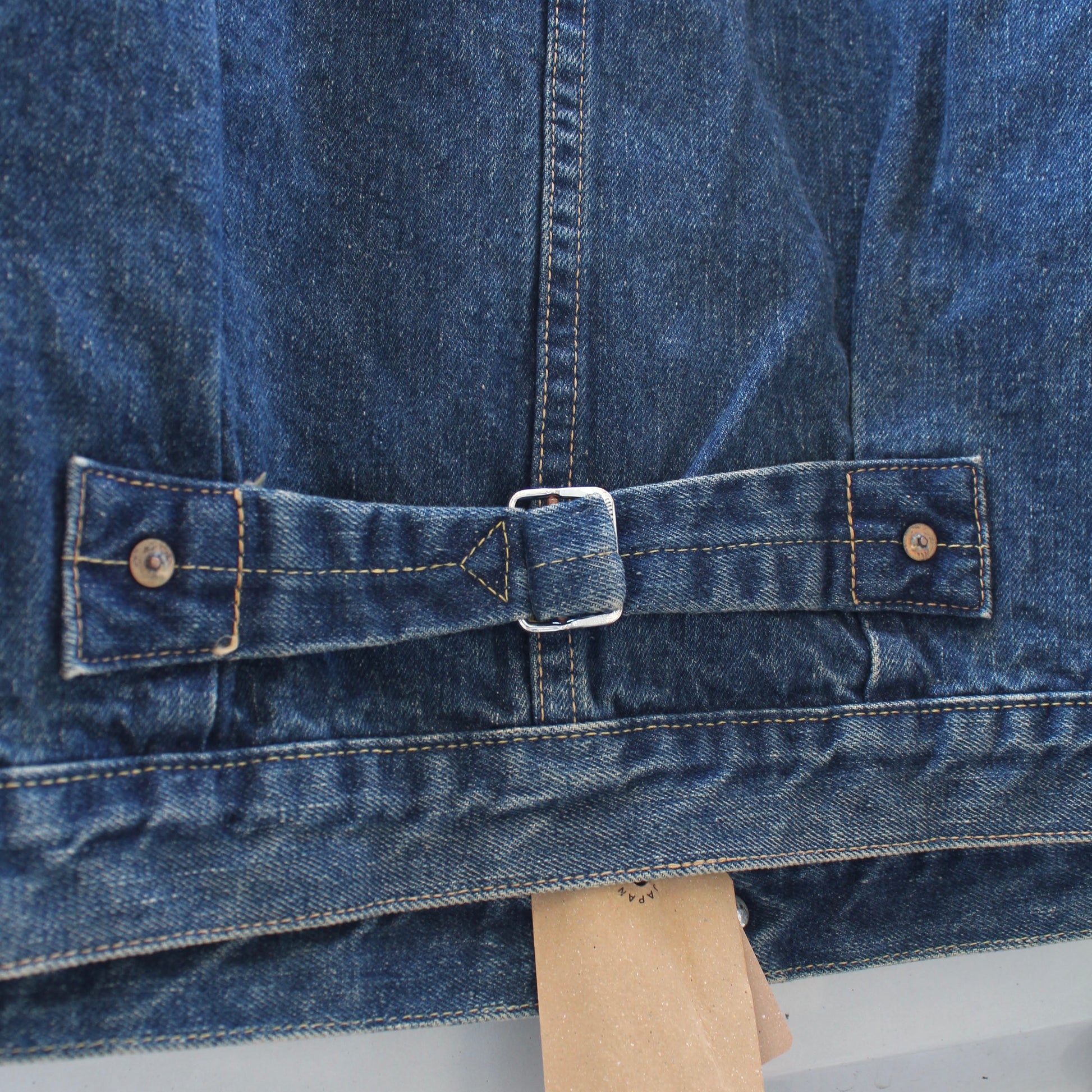 以40S的TYPE I DENIM JACKET 為靈感來源,最具標誌性的當然是左胸單袋與後幅的巴黎扣設計,CUTTING偏短身方形。另外值得留意的是SIZE 3或以上的SIZE為了更貼近當年的設計,後幅特別做了“T-BACK”(因當年的織布機無法編織較大布封的布,所以大SIZE的後幅需要將兩塊布縫製在一起)的縫製。